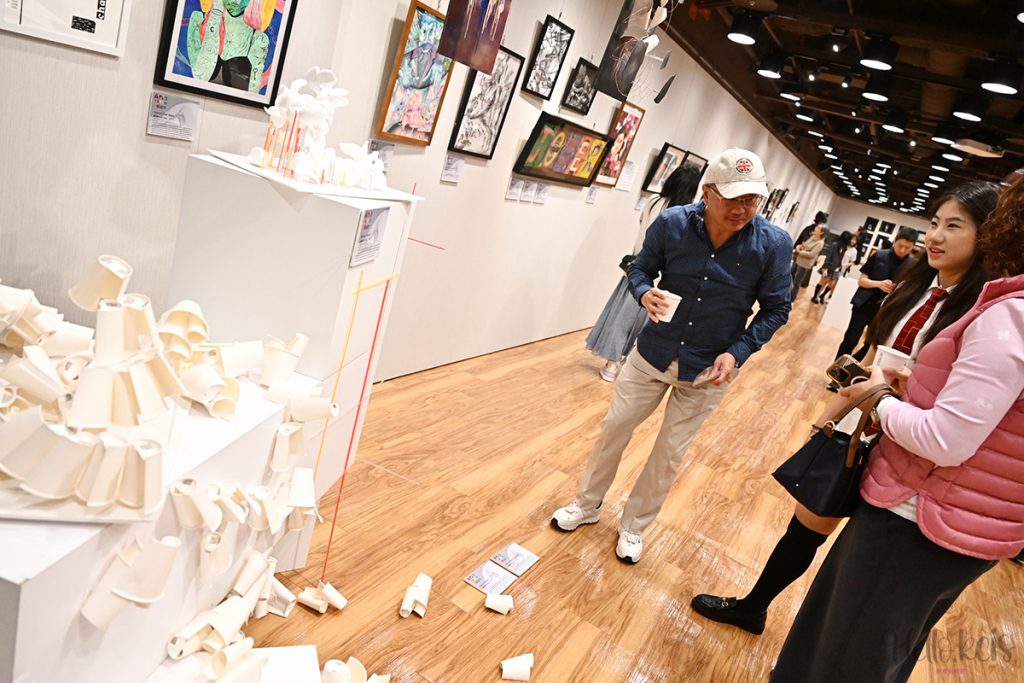 此次展覽延續跨校區聯展形式,集結秀岡、青山與新竹校區作品,其中青山校區展出6件、新竹校區展出5件於全國學生美術比賽中獲獎的作品。青山校區教務處主任陳宥璇表示,不同年齡層作品同場展出,有助學生理解能創作隨學習經驗逐步發展的過程。